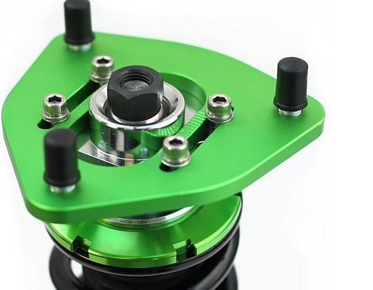 HSD MonoPro coilovers offer competition-based mono-tube dampers, with 44mm pistons. The dampers in the front struts are also inverted for greater strength and reduced unsprung weight. The dampers have 16-step adjustment, with a clear difference felt for every step. Spring rates are aimed at club-level racing, but still compliant enough for every-day driving.